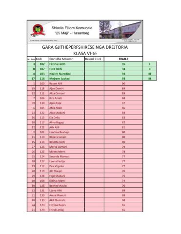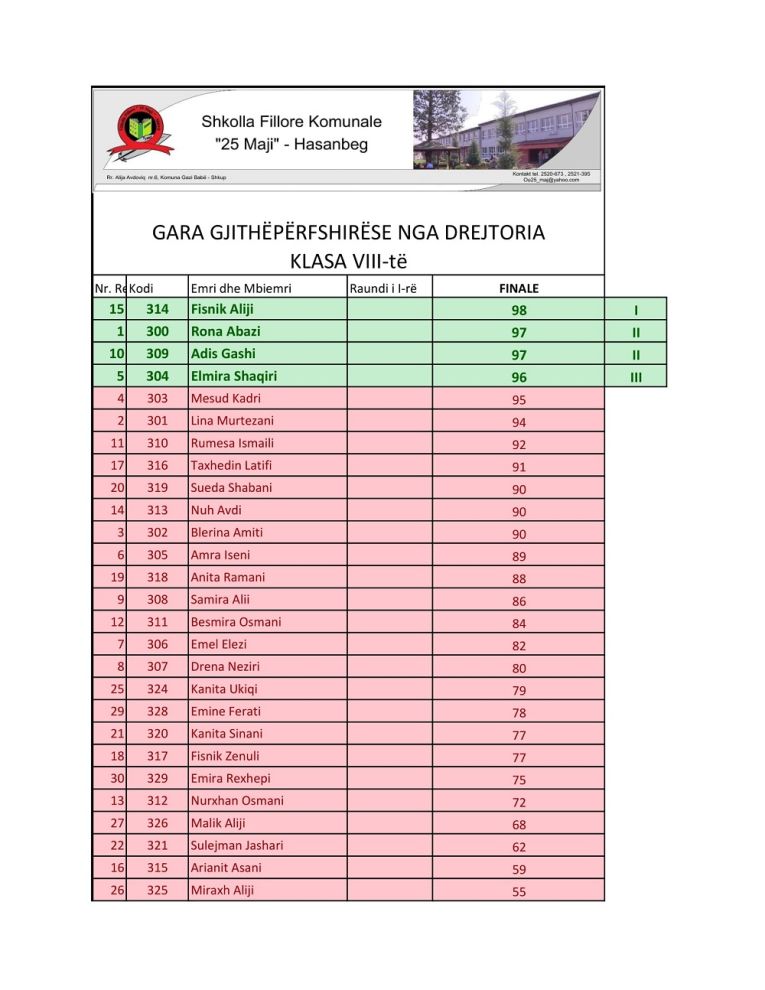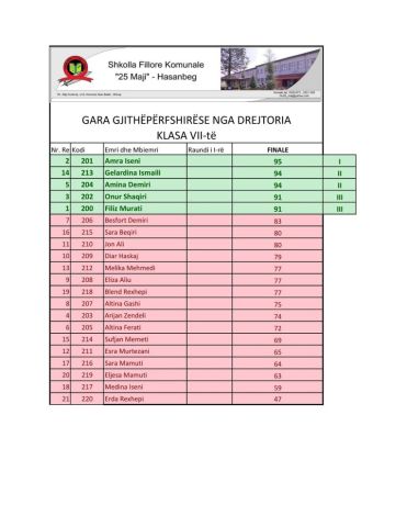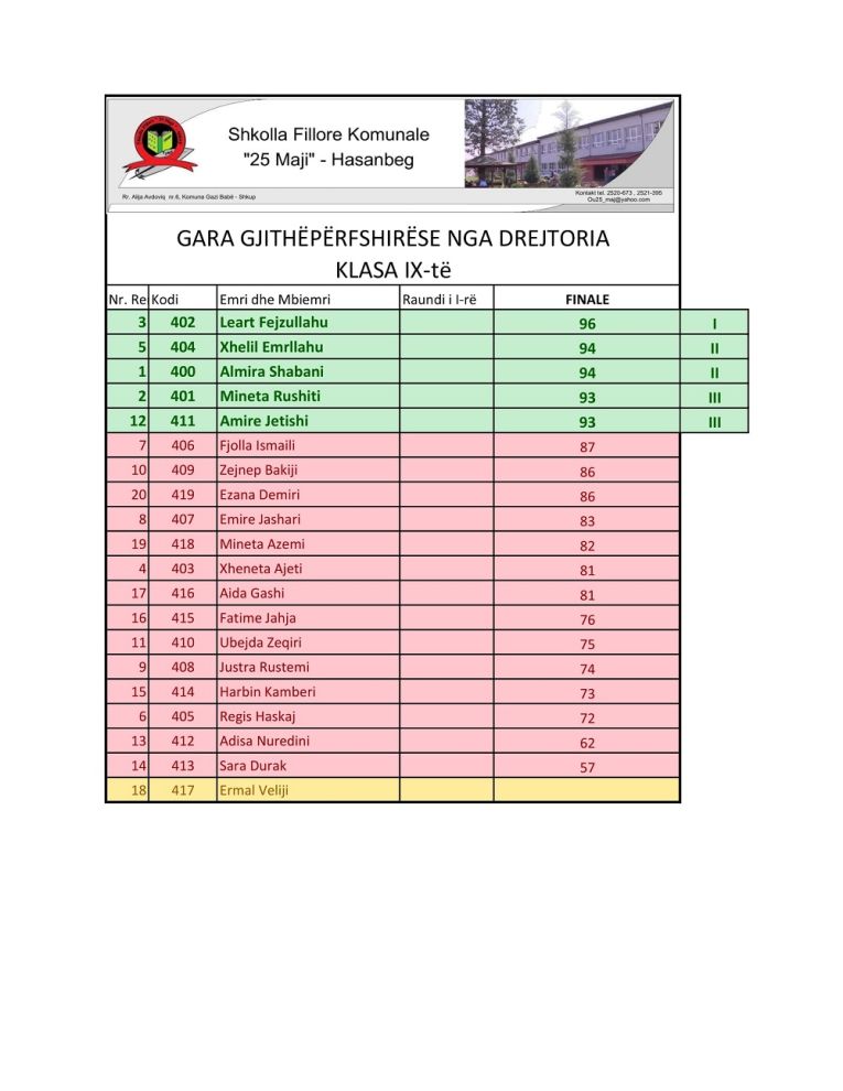 Drejtoria e shkollës për nxënësit e dalluar në vendin e I-rë, II-të dhe të III-të do të ndajë Mirënjohje si dhe një shëtitje njëditore.