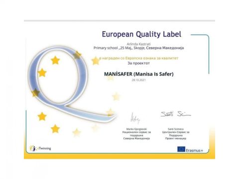 The municipal school "25 May'' - Skopje, is awarded with 9 European Quality Labels.
