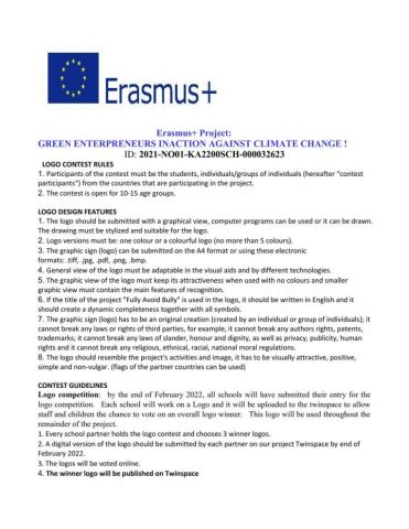 Thirrje për pjesëmarrje në projekt „Green enterpreneurs in action against climate change!“, Zgjedhja e punimit me te bukur artistik te logos se projektit