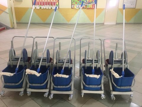 Денес ние обезбедивме технички персонал за чистење на училници и ходници според стандардите со соодветни алатки.