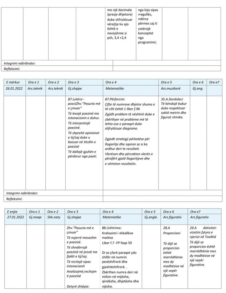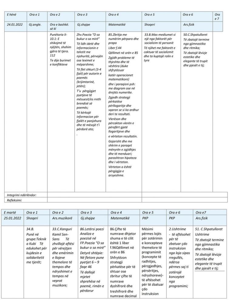 Неделен план јануари