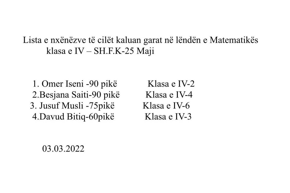 Ученици кои победија на натпреварот по предметот Математика IV одд.