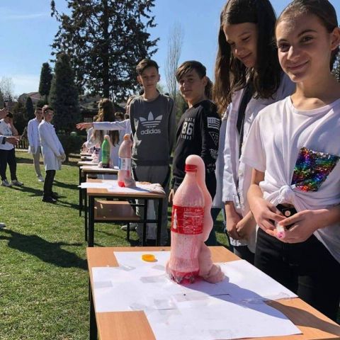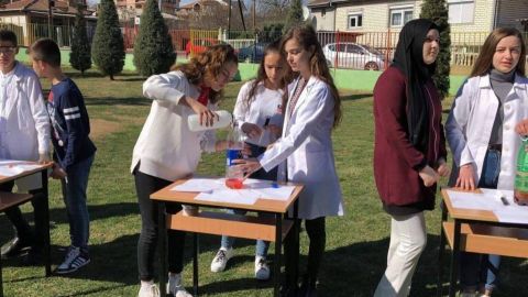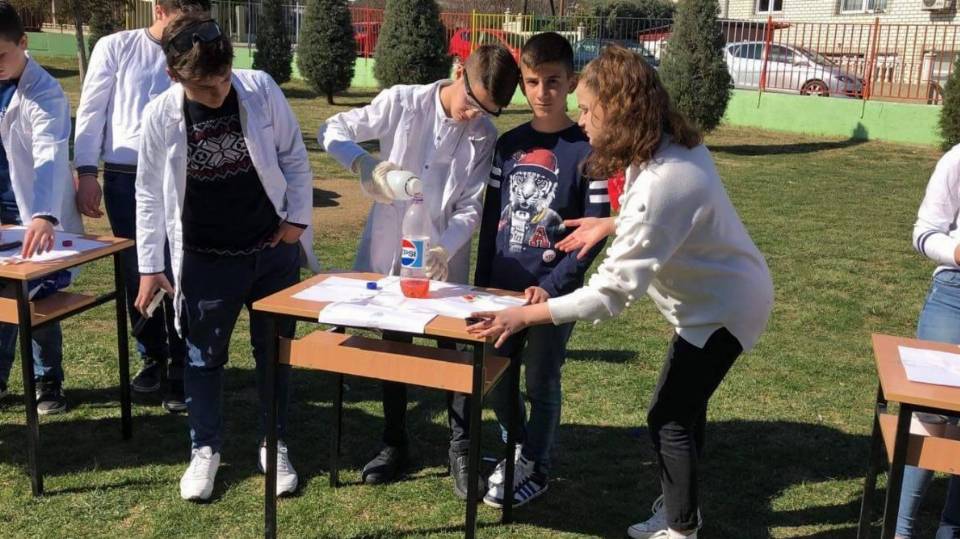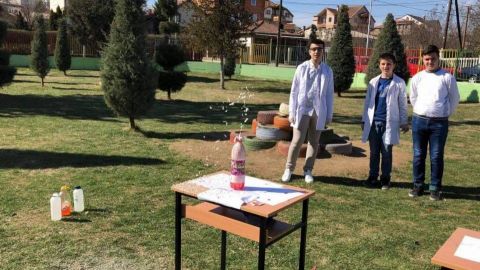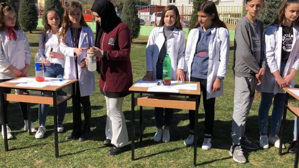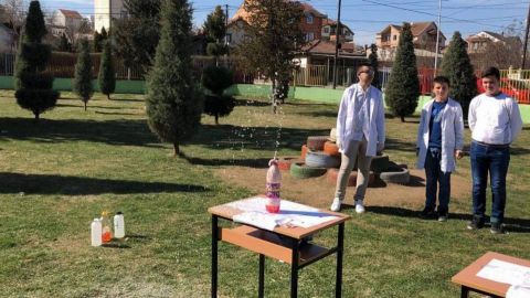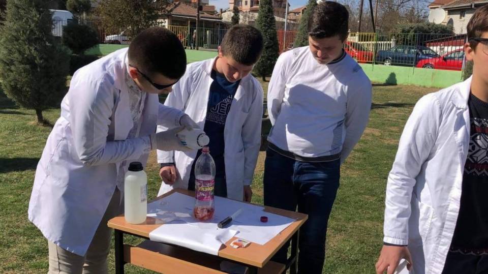 Eksperiment nga lënda e kimisë i demonstruar në mënyrë atraktive nga nxënësit e klasës VIII-7