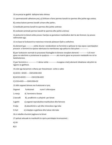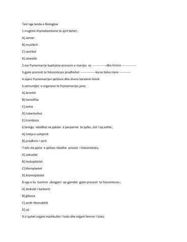 Test nga lenda e Biologjise per garat